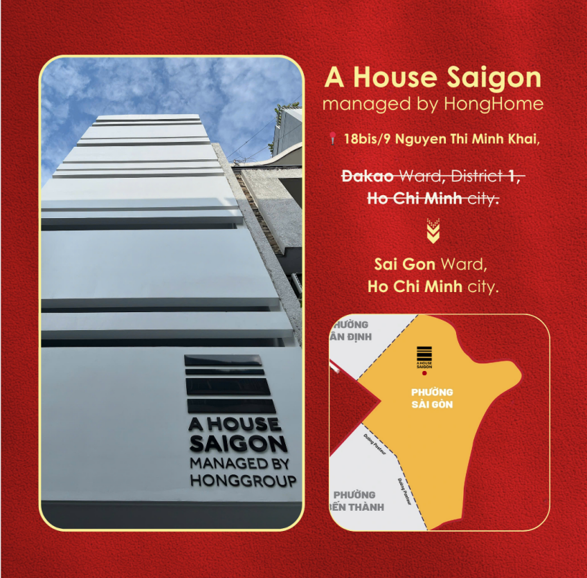 A House SaiGon tự hào tọa lạc tại 18bis/9 Nguyễn Thị Minh Khai, Phường Sài Gòn, Quận 1, một vị trí không thể thuận tiện hơn để khám phá mọi nét quyến rũ của Sài Gòn: