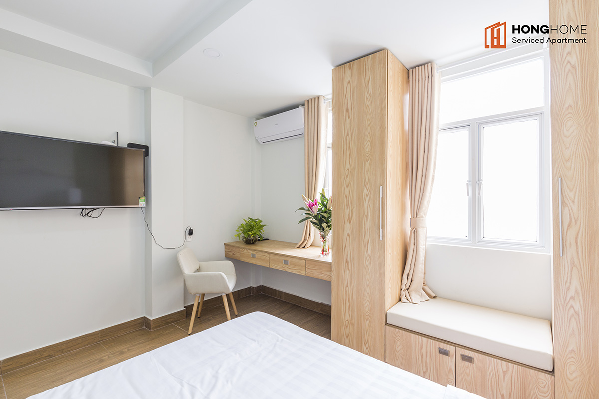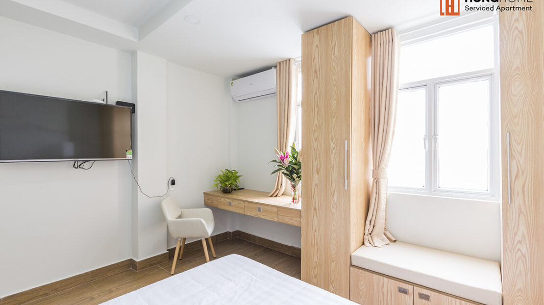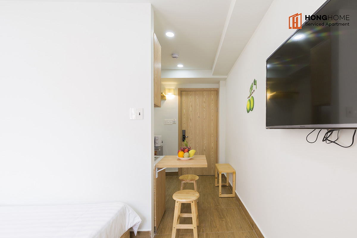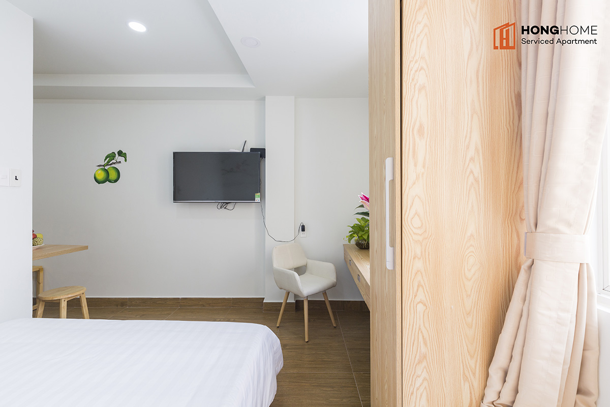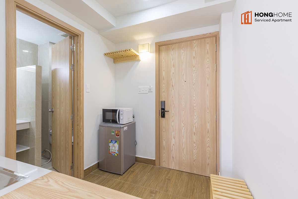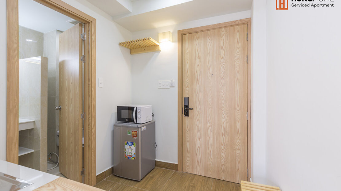 Nguyen Trung Ngan project is located right in a small alley going to Ton Duc Thang and Ly Tu Trong main streets to go to the city center. Surrounded by eateries, restaurants not only Vietnam but also a variety of dishes from many other countries. The building consists of 5 floors with many different types of apartments (studio, 1 bedroom and 2 bedrooms), fully furnished (sofa, wardrobe, bed, air conditioner, refrigerator, TV, kitchen utensils… ) and services (cleaning rooms, washing clothes, changing bed sheets…).
