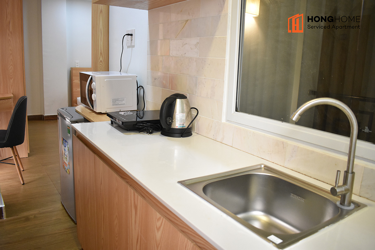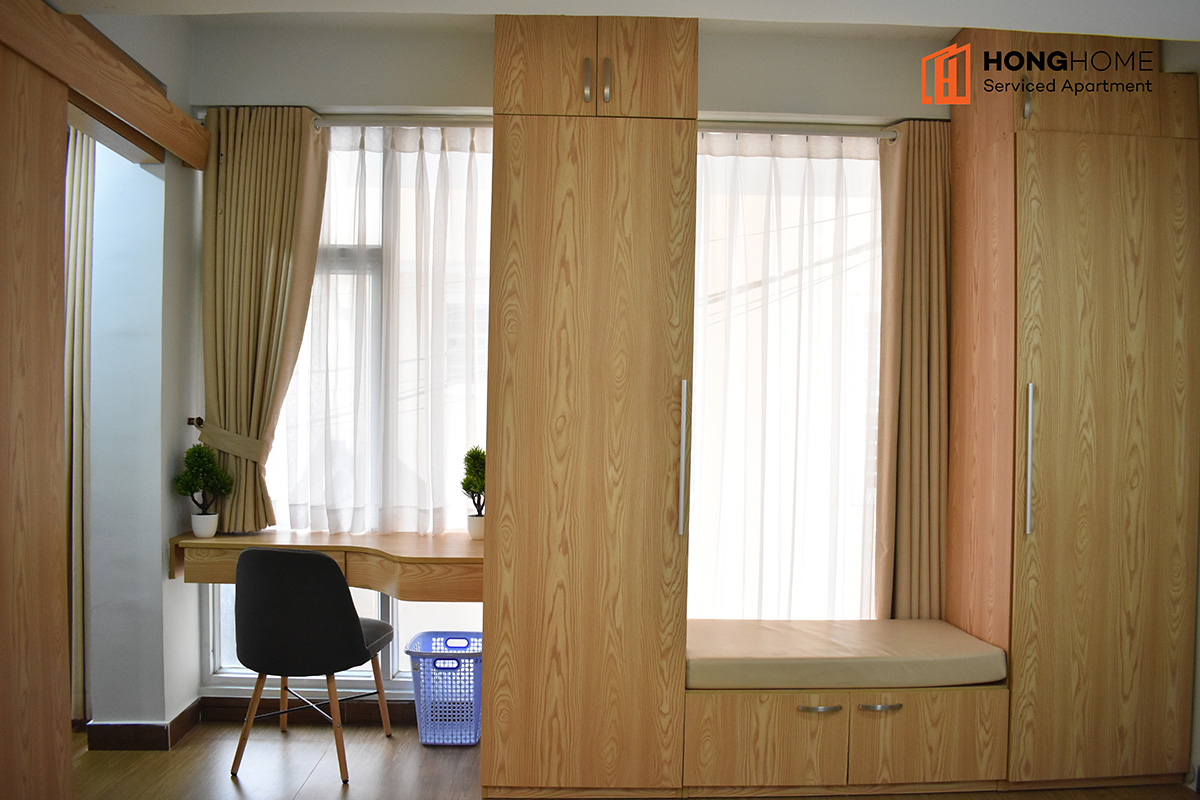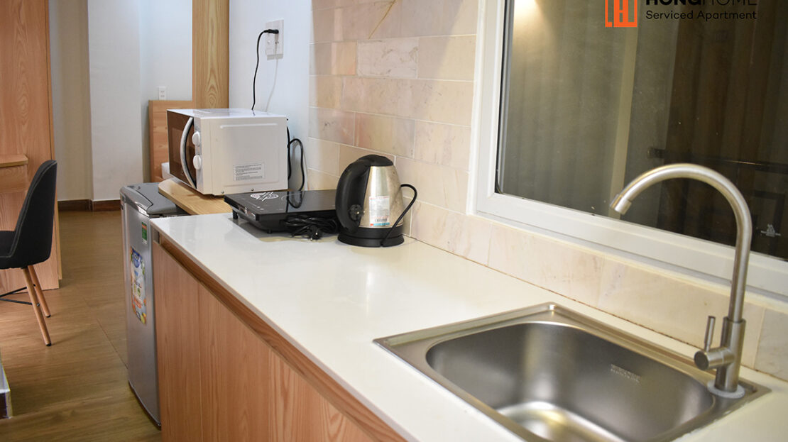 Nguyen Trung Ngan project is located right in a small alley going to Ton Duc Thang and Ly Tu Trong main streets to go to the city center. Surrounded by eateries, restaurants not only Vietnam but also a variety of dishes from many other countries. The building consists of 5 floors with many different types of apartments (studio, 1 bedroom and 2 bedrooms), fully furnished (sofa, wardrobe, bed, air conditioner, refrigerator, TV, kitchen utensils… ) and services (cleaning rooms, washing clothes, changing bed sheets…).
