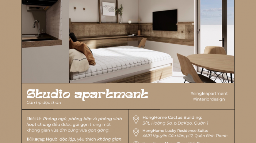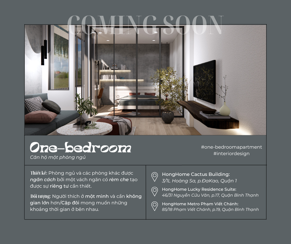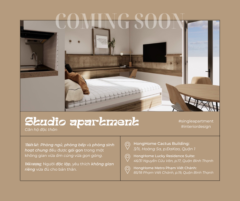 Serviced apartments are usually divided into 3 main types: Studio, One-bedroom and Two-bedroom apartments, to suit your diverse needs! In addition to HongHome’s active buildings, new buildings under construction will still be fully designed with elements of each type of apartment and retain an inherent HongHome vibe! Let’s find out the difference between these 3 main apartment types!