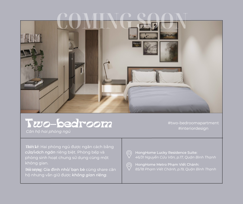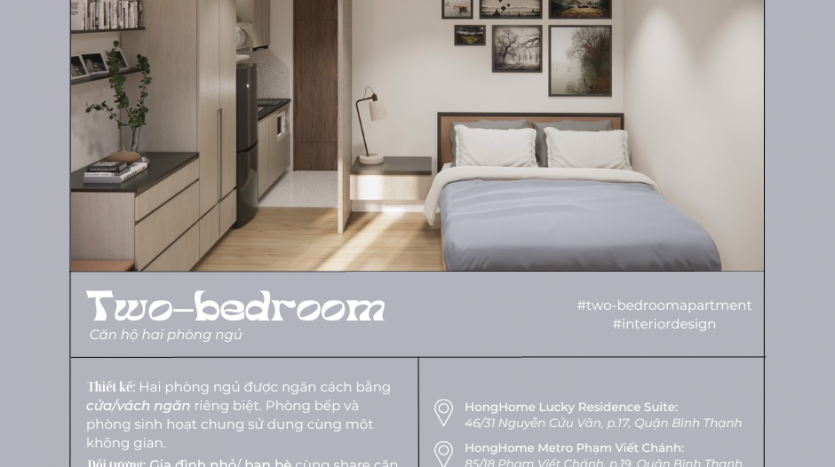 - Even for singles, a two-bedroom apartment is worth considering as the available room can serve multiple purposes. If you work from home or run an online business, you can use the room as an office. You can also use it as a gym, studio, or even a living room if you have friends or family that often stay. So have you decided where to ‘pick’ your apartment yet? If you have closed your own dream apartment, please contact HongHome for advice and appointment: