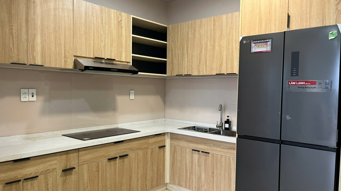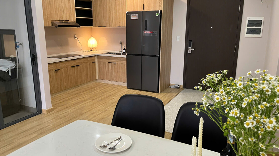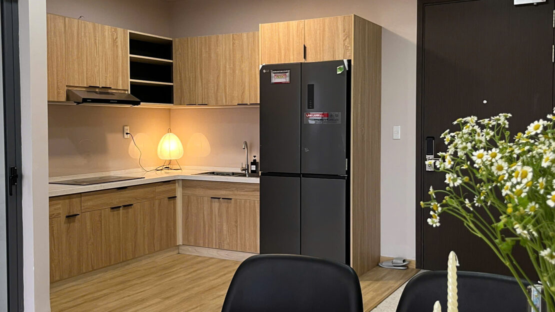 - Bếp nấu ăn đầy đủ tiện nghi với lò nướng, bếp nấu, máy hút mùi và tủ lạnh sức chứa lớn.