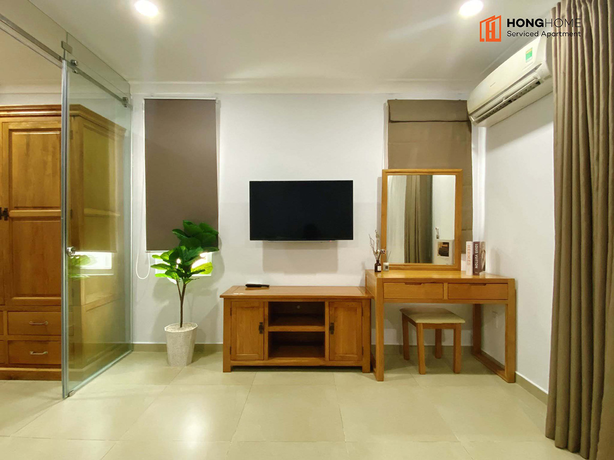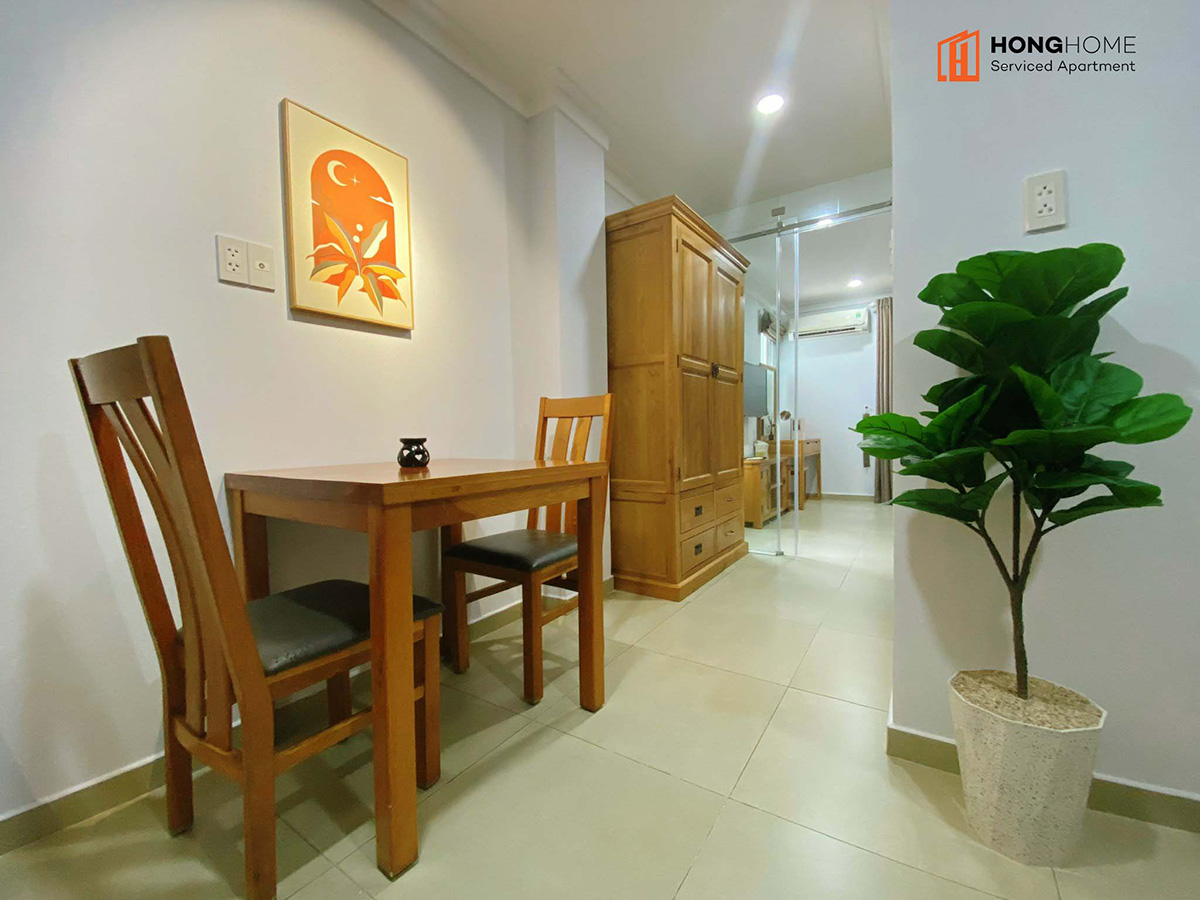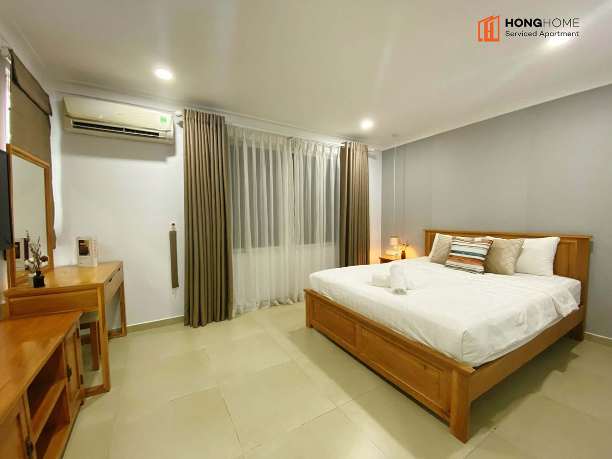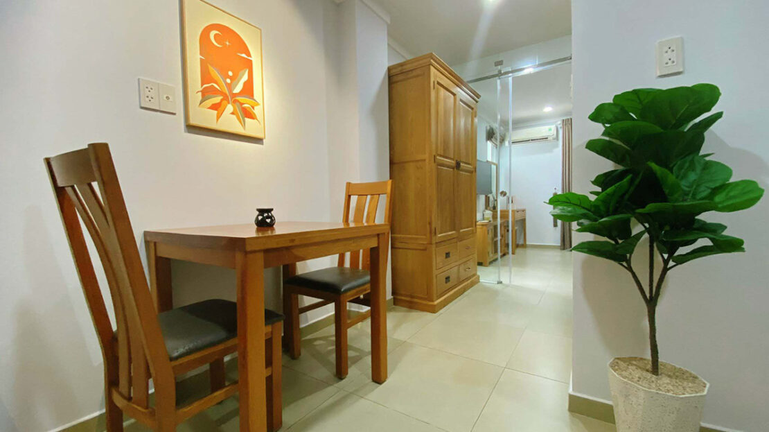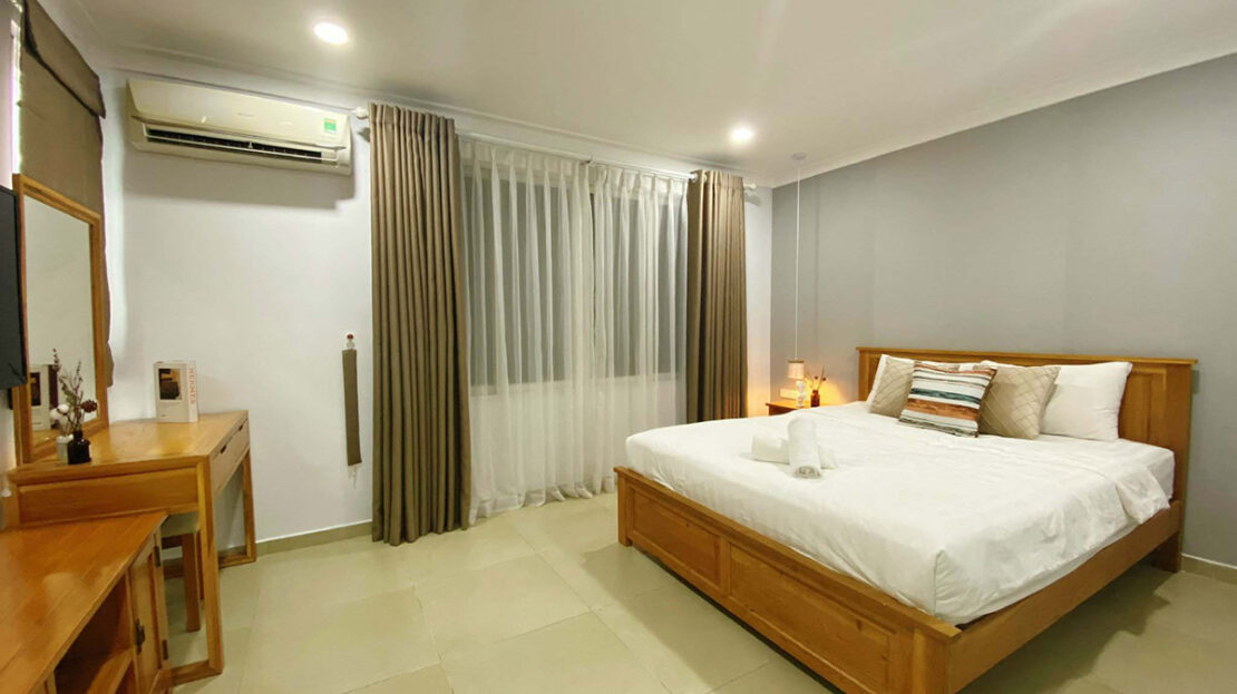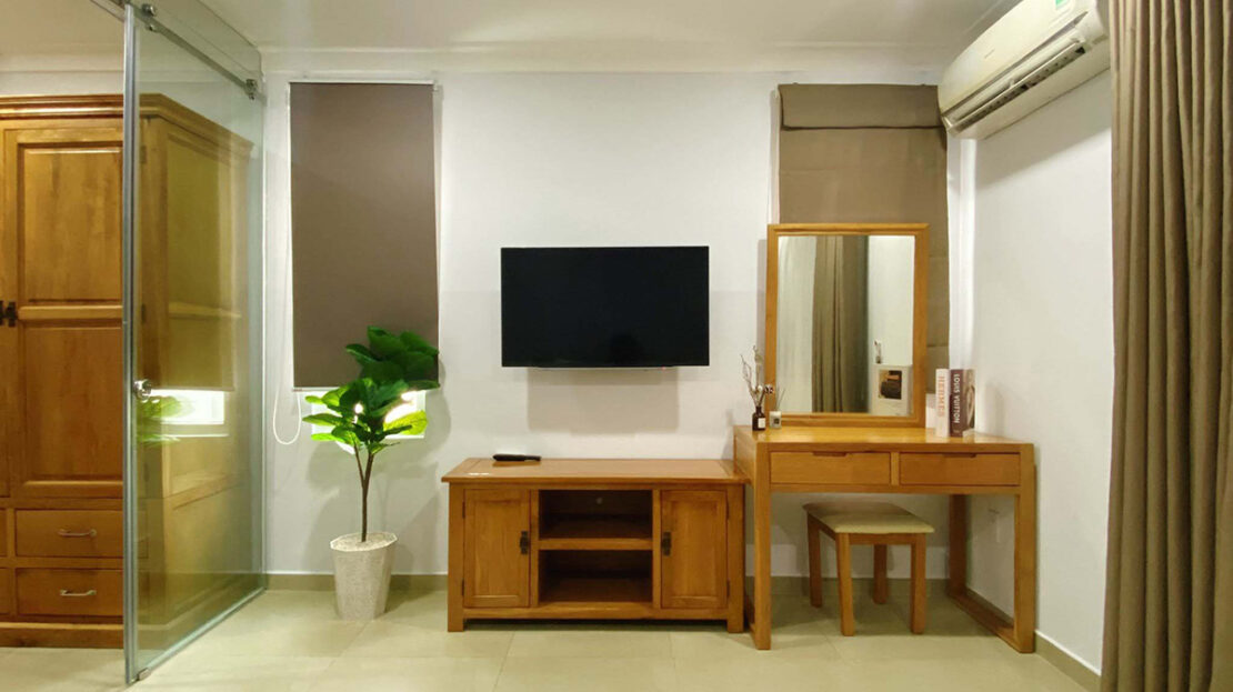 Tòa gồm 6 tầng, 1 văn phòng cho thuê và 1 sân thượng cùng 33 căn hộ dịch vụ khác nhau (studio, 1 phòng ngủ và 2 phòng ngủ), được bày trí đầy đủ nội thất theo phong cách tối giản nhưng ấm áp (sofa, tủ, giường, máy lạnh, tủ lạnh, ti vi, đồ dùng bếp …) và dịch vụ (dọn phòng & giặt quần áo 2 lần/tuần, thay ga trải giường 1 tuần/lần, free nước sinh hoạt, bãi đậu xe máy…).