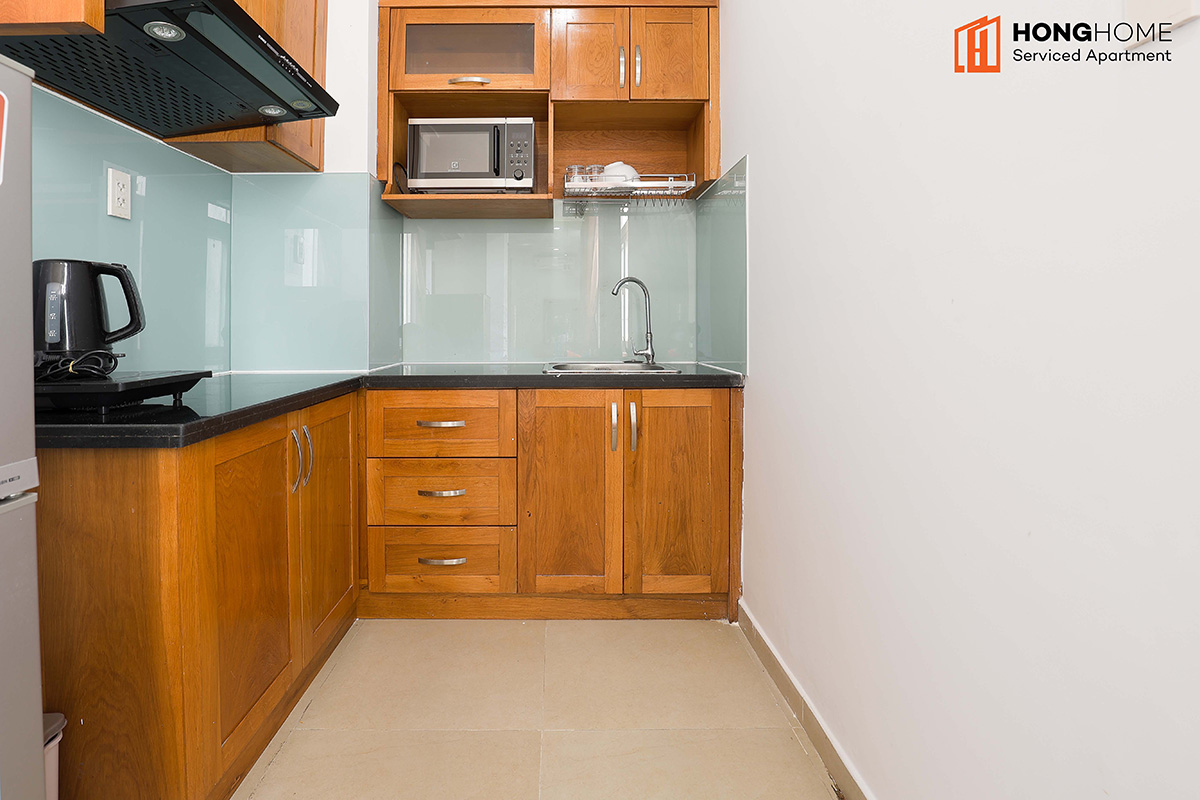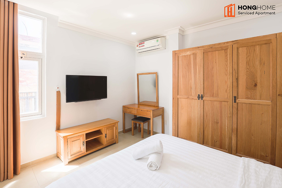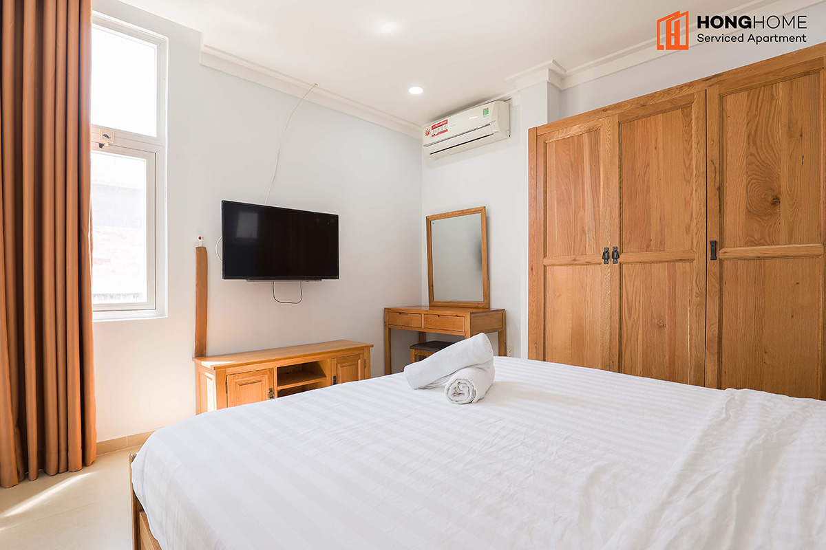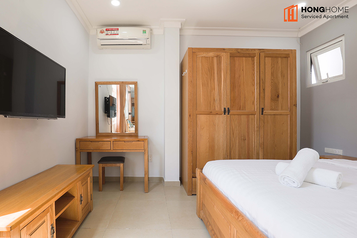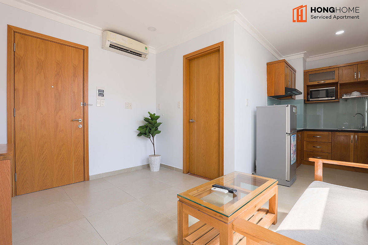 Tòa gồm 6 tầng, 1 văn phòng cho thuê và 1 sân thượng cùng 33 căn hộ dịch vụ khác nhau (studio, 1 phòng ngủ và 2 phòng ngủ), được bày trí đầy đủ nội thất theo phong cách tối giản nhưng ấm áp (sofa, tủ, giường, máy lạnh, tủ lạnh, ti vi, đồ dùng bếp …) và dịch vụ (dọn phòng & giặt quần áo 2 lần/tuần, thay ga trải giường 1 tuần/lần, free nước sinh hoạt, bãi đậu xe máy…).