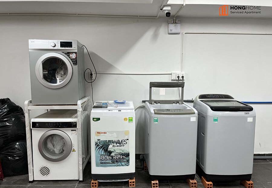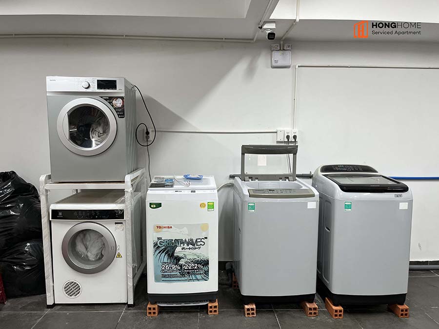 ✅ Khu vực giặt ủi chung với máy giặt/máy sấy
