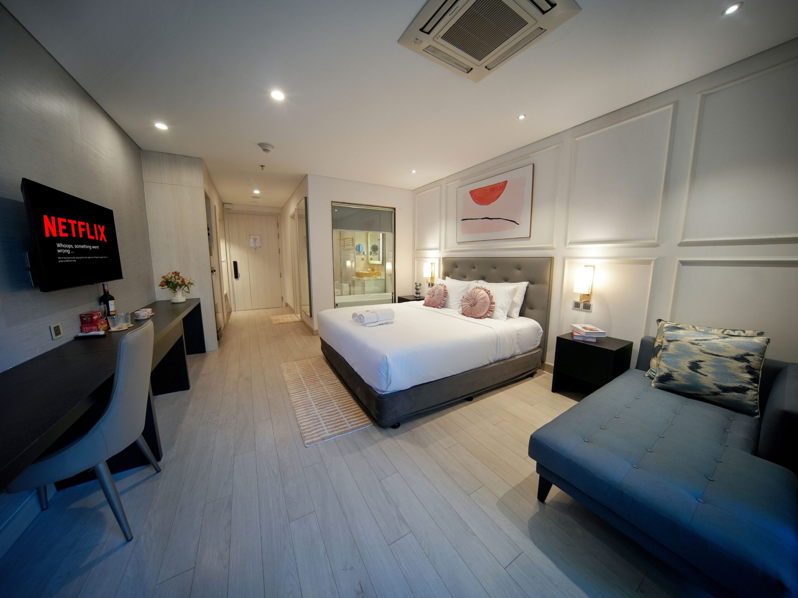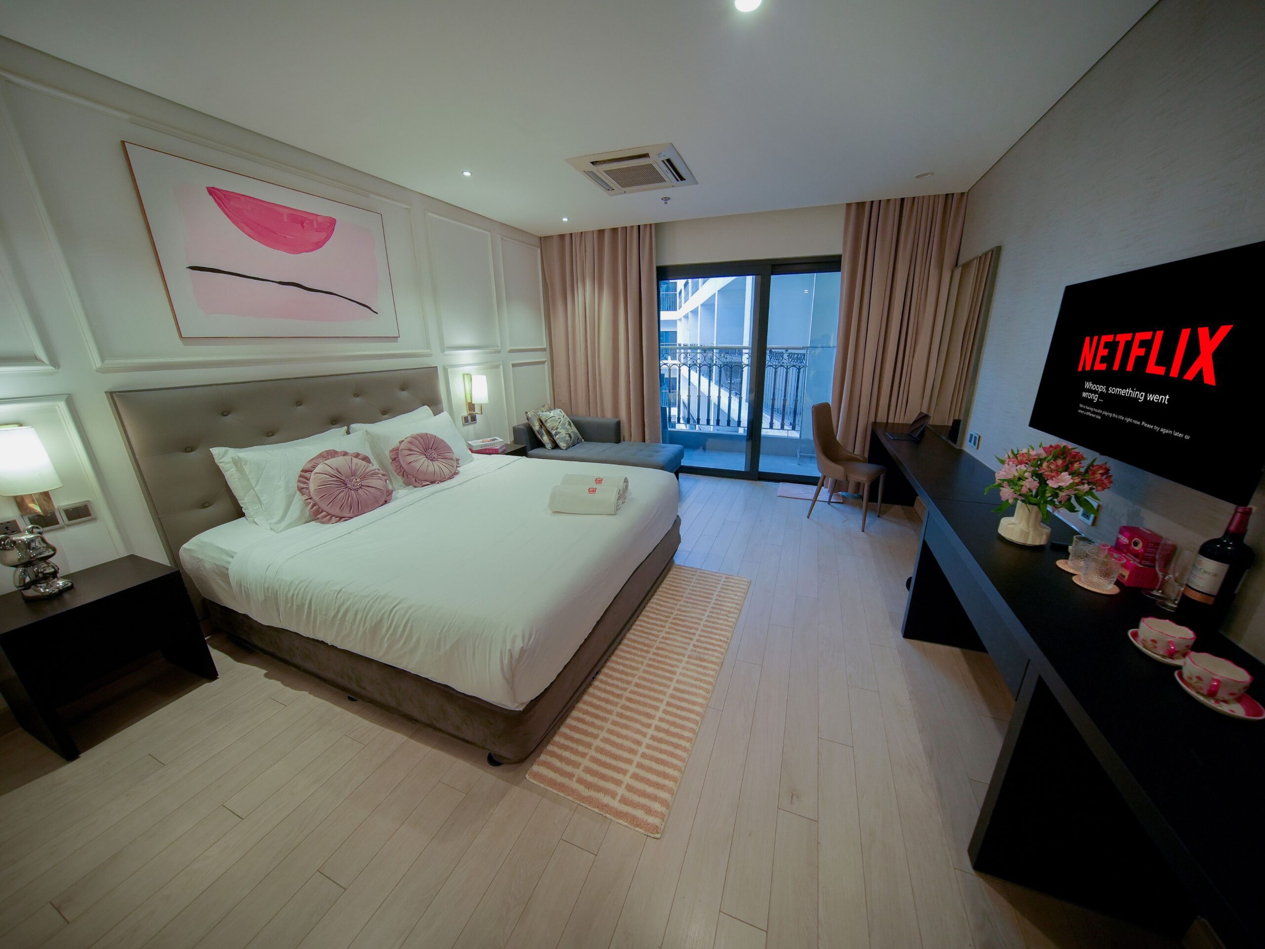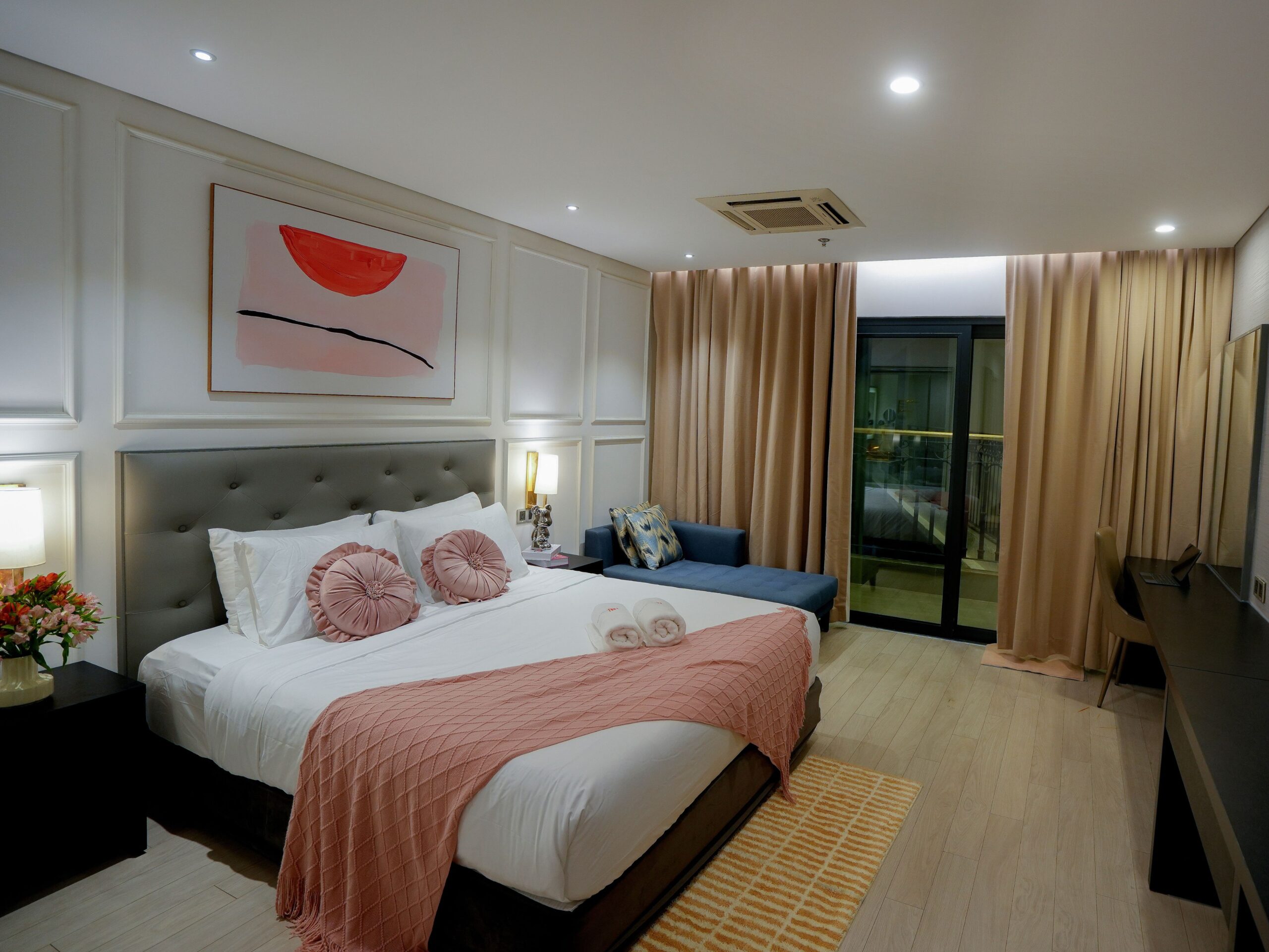 Phòng ngủ Superior được trang bị nội thất hiện đại và tiện nghi vệ sinh cao cấp, mang đến cho quý khách một trải nghiệm sống đẳng cấp. Vách kính ngăn cách khu vực tắm và phòng ngủ tạo nên không gian sinh hoạt chung rộng mở. Với ban công riêng và cửa kính, quý khách có thể ngắm nhìn toàn cảnh hình dáng chữ “H” của tòa nhà và khung cảnh xung quanh được thiết kế riêng cho quý khách. Quý khách có thể tận hưởng sự thoái mái và tiện lợi của giường cỡ King cùng SmartTV màn hình phẳng trong phòng ngủ, linh hoạt phù hợp cho các cặp đôi du lịch hoặc nhóm bạn bè.